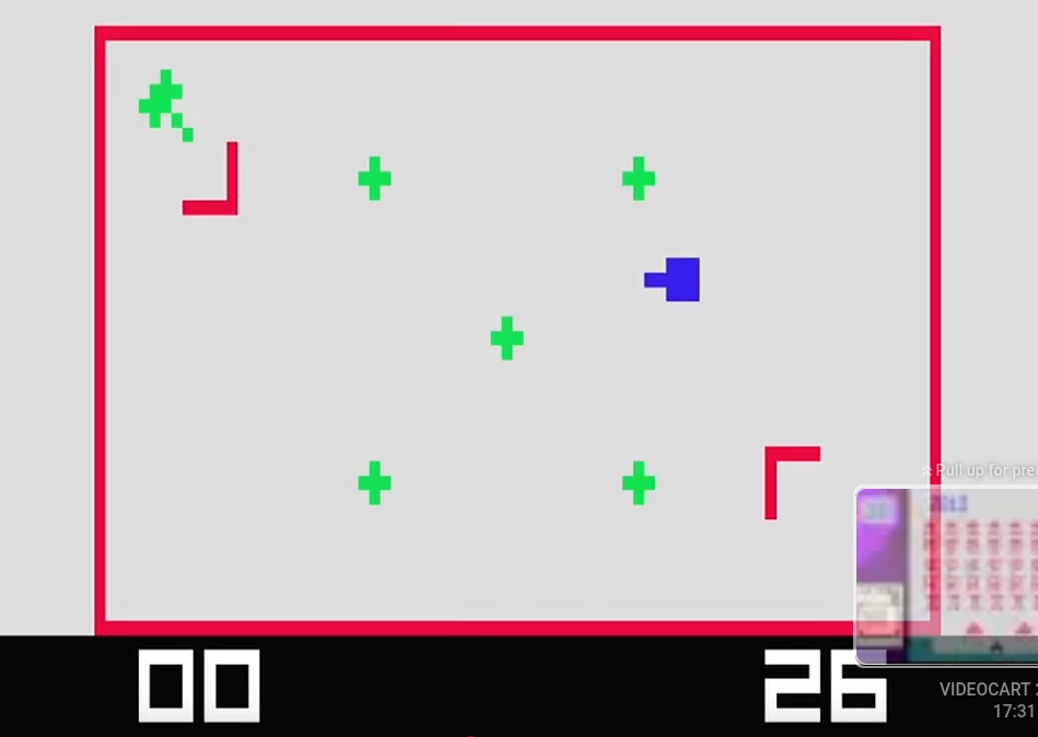 The most common ^2 computers were second-generation video game consoles in the 1970s, which had minimalist “graphics” (dozens of pixels!) and “music” (square waves or explosion noises). The Fairchild Channel F (1975, 64 bytes RAM, 2kB video buffer) used cartridges while the Nintendo Game&Watch (1980, 256 bytes RAM) had stencil graphics and only one game, but it was portable and also functioned as a timepiece.